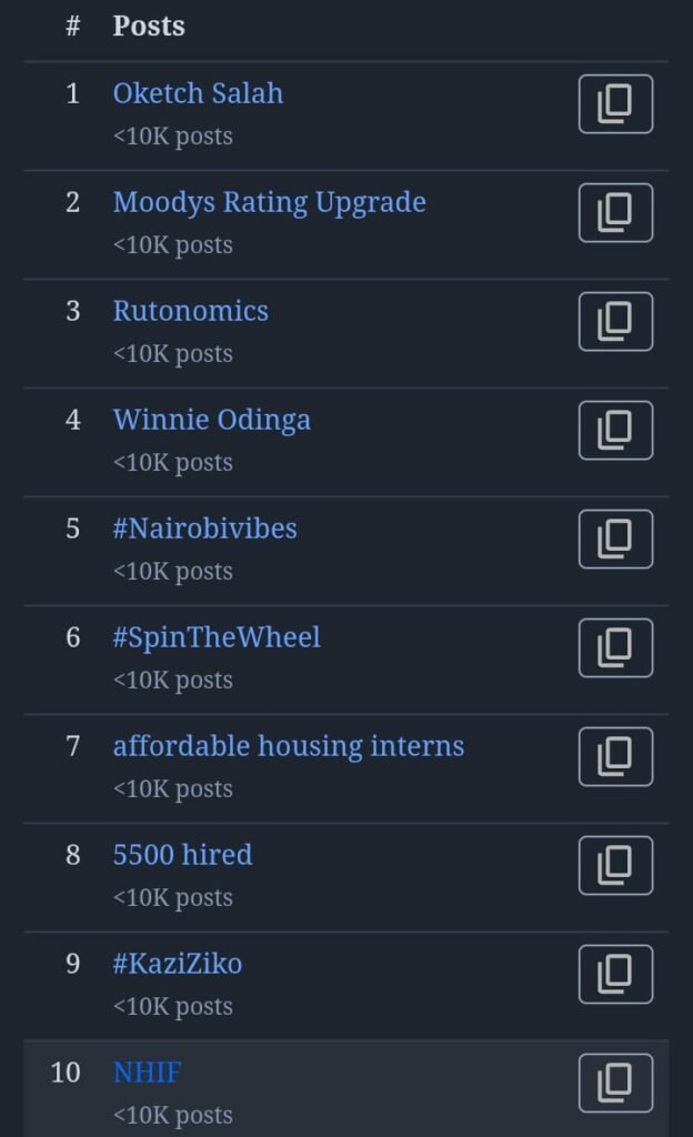This is trending alongside #5500Hired and #IkoKazi- Swahili for “There are Jobs” which both stress on President William Ruto’s commitment to addressing youth unemployment in Kenya.