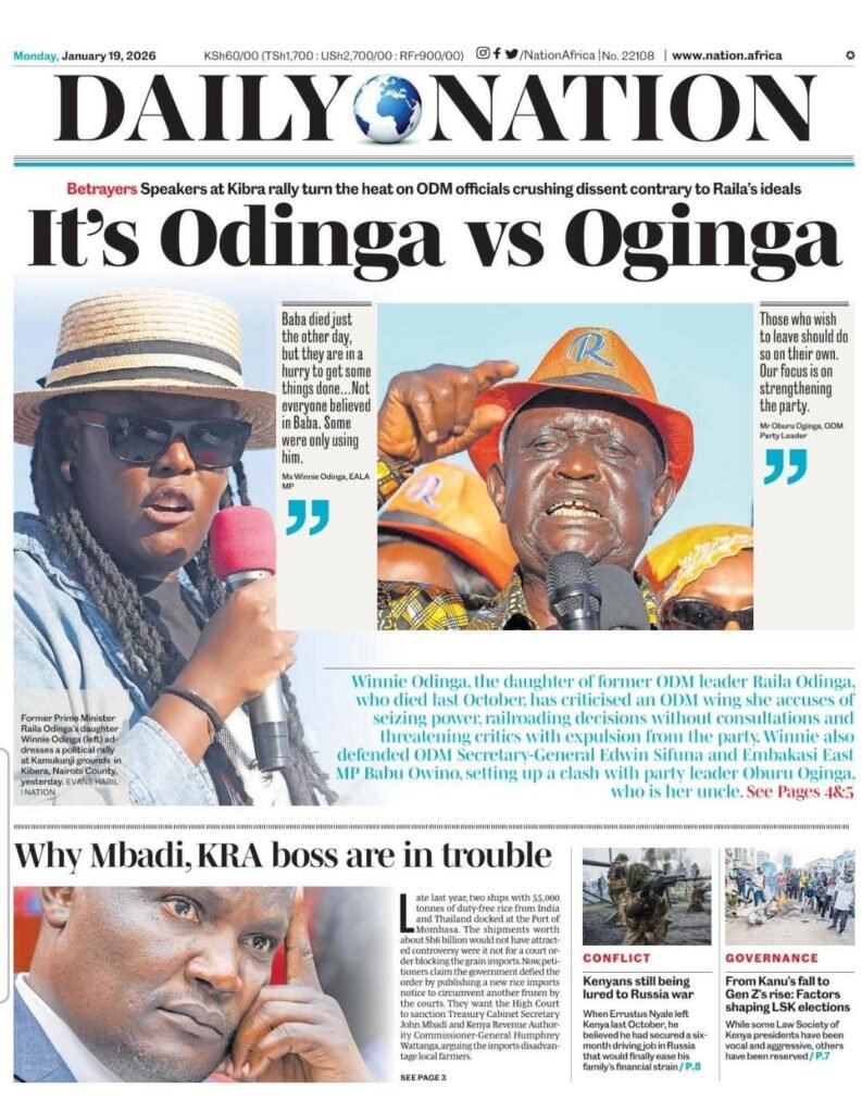 Her bold statement at Kamukunji grounds yesterday where she accused ODM old guard of compromising her late father’s opposition legacy for government coalition seems to have rattled the party’s leadership.
